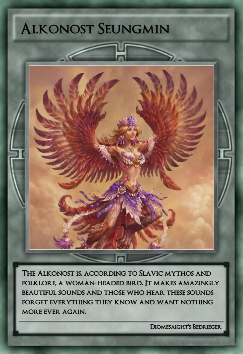 "Listen and die." The name is Vorst Seungmin, a bird with the head of a woman. He often shows his singing skill to please the human and telling them that the future lives of those, who mourn for heaven, are lost and irrevocable. What makes him so dangerous is his beautiful voice because every creature will forget about the world. Their mind and soul unconsciously are leaving their bodies. He is the partner of Vorst Nevan